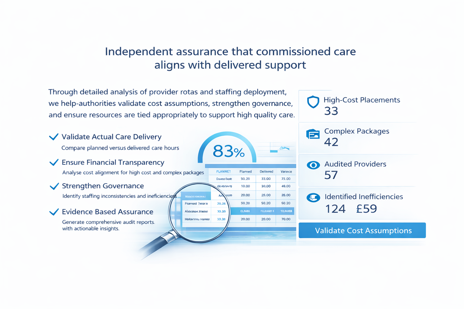 Commissioners are increasingly expected to evidence that care funding reflects actual delivery. However, validating staffing models can be operationally complex and time intensive.
